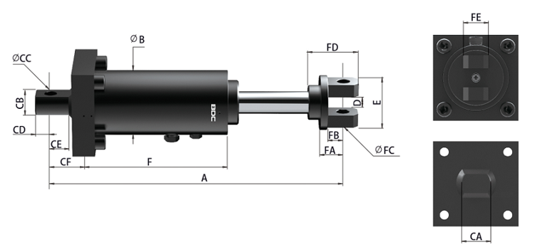 安裝要求:緩沖行程在300mm以內(nèi),較大允許側(cè)負荷角度為2.5°;緩沖行程為300mm以上,較大允許側(cè)負荷角度為1°;確保螺栓螺母鎖緊牢固,建議使用螺紋膠。
